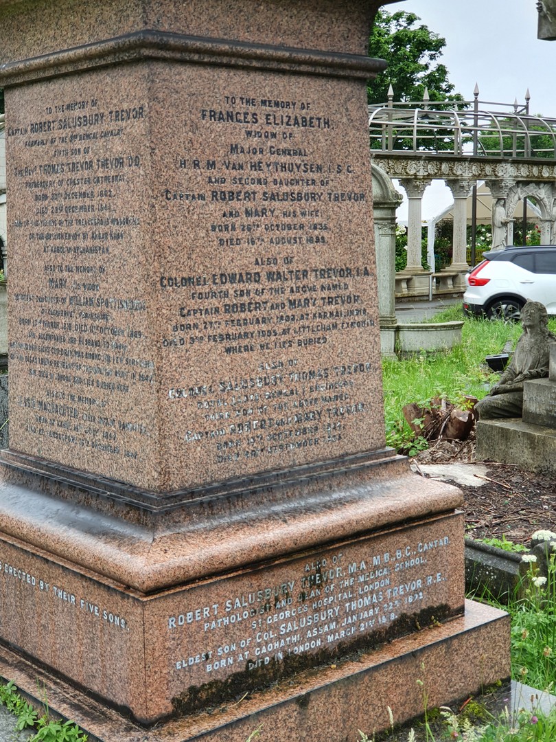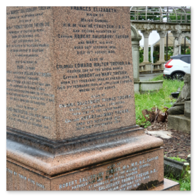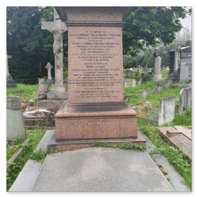 The memorial in Kensal Green Cemetery was erected by her five sons on her death and she is interred there.