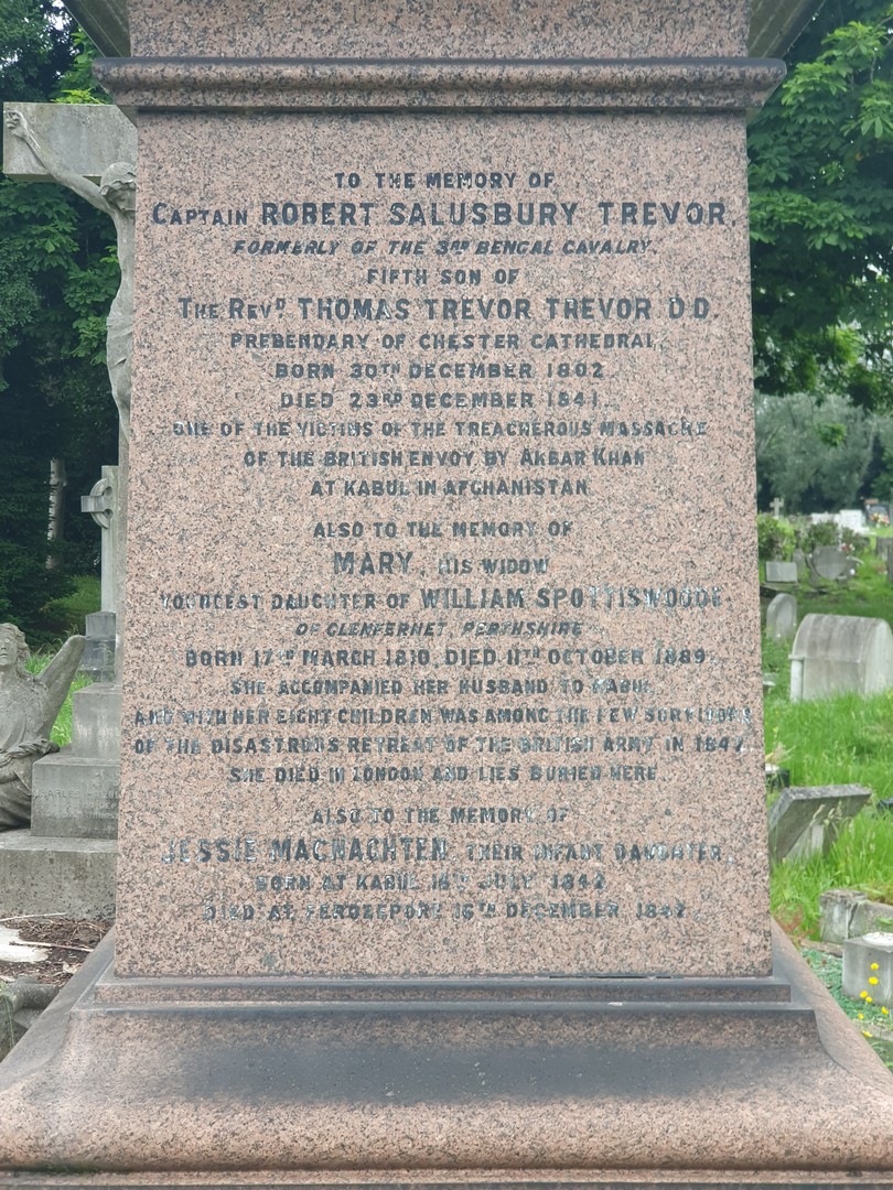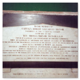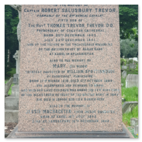 Trevor was an aide to Sir William Hay Macnaghten, political head of the British forces, during the 1st Anglo-Afghan War (1839-42) which deposed Dost Mohammad Khan in favour of Shah Shuja (an ancestor of Hamid Karzai). He was accompanied by his wife and children. The initial success of the invasion and change of regime had been undermined by, among other reasons, the treatment of local women by the soldiers and reduction of payments to tribal chiefs.