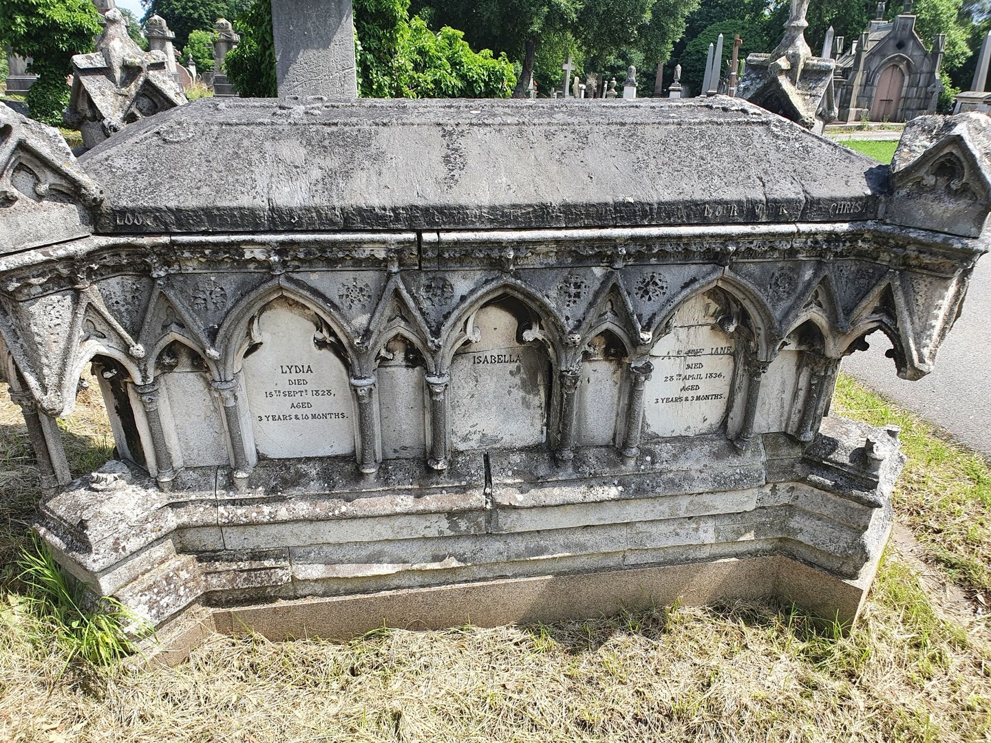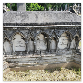 Walker married Lydia Sarah Pattle in Bombay 1821 - she died in Versailles 1864. The monument is dated to 1866 and cemetery records show she is the only person interred there. Six children are named on the monument, only Isabella survived infancy. She was responsible for the monument, lived to 90 and is buried in Rome.